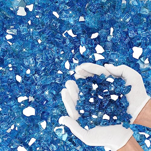 Skyflame 10-Pound Fire Glass for Fireplace Fire Pit and Landscaping, Pacific Blue Reflective, 1/2-Inch, 10 Pound (1/2")
