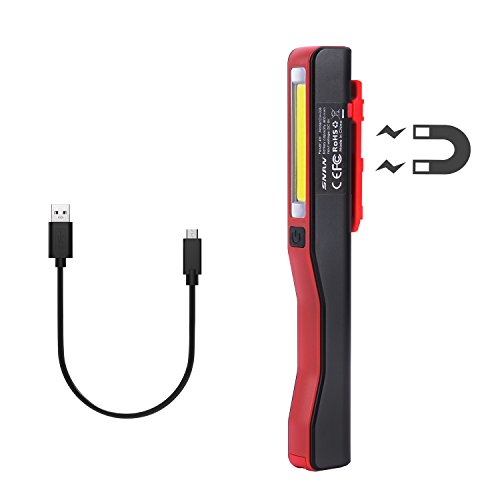 • COB LED Work Light, Rechargeable Mechanic Inspection Lamp Worklight Portable Hand Pocket Pen Flashlight Flood Beam with Rotating Magnetic Strip Clip for Household, Workshop, Camping, Car Repairing