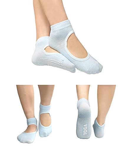 • Yoga Socks for Women Non-Slip Grips & Straps Ideal for Pilates Barre Ballet Dance Bare Foot Workout Pack 3