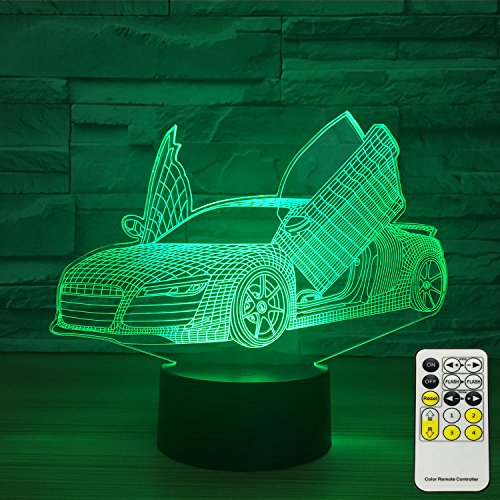 • INSONJOHY Sport Car 3D Optical Illusion Lamps Night Lights for Kids 7 Colors Change with Touch Remote Control Kids Night Light As a Birthday Gift Ideas for Boys (Sport Car )