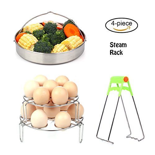 • Steamer Basket Rack Set for Instant Pot Accessories - Egg Steamer Rack/Vegetable Steamer Basket Fits Instant Pot 5, 6, 8qt Pressure Cooker with Foldable Bowl Plate Dish Clip