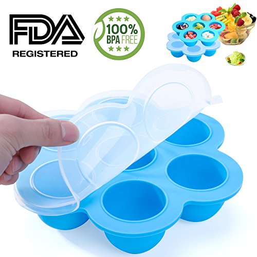 • Silicone Egg Bites Molds with Lid for Instant Pot Accessories 5 6 8 qt Pressure Cooker,Silicone Freezer Tray,Baby Food Container and Reusable Storage Container,Blue