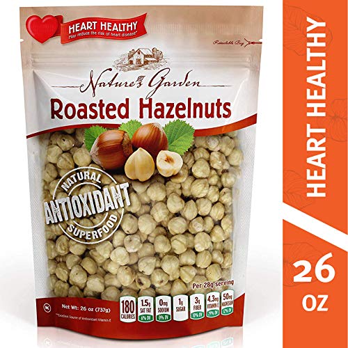 Nature's Garden Roasted Hazelnuts, Heart Healthy snack, Natural Antioxidant, Vegan, Koshar, Gluten Free, Cholesterol Free, Sodium Free, no Artificial Ingredients, 26 oz.