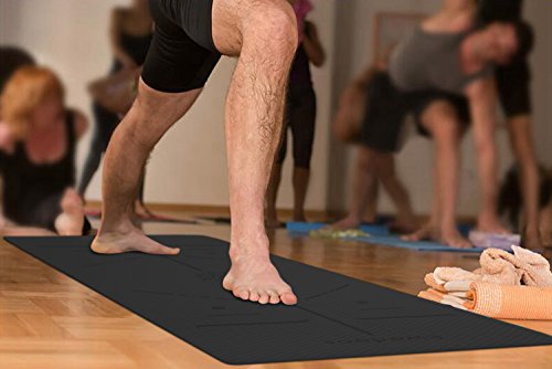 • Ewedoos Eco Friendly Yoga Mat with Alignment Lines, TPE Yoga Mat Non Slip Textured Surfaces ¼-Inch Thick High Density Padding To Avoid Sore Knees, Perfect for Yoga, Pilates and Fitness (Gray)
