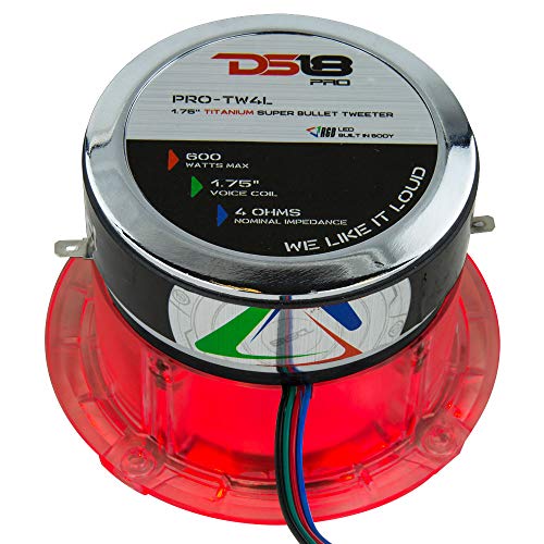 DS18 PRO-TW4L RGB Super Tweeter - 1.75", Polycarbonate Frame and Titanium Diaphragm, 560W Max, 280W RMS, 4 Ohms, Built in Crossover - PRO Tweeters are The Best in The Pro Audio Market (1 Speaker), RGB LED