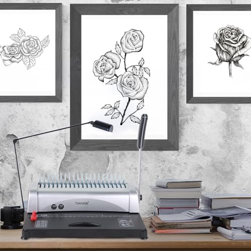 • TIANSE Binding Machine, 21-Holes, 450 Sheets, Comb Binding Machines with Starter Kit 100 PCS 3/8'' Comb Binding Spines, Comb Binder Machine Book Maker Perfect for Letter Size, A4, A5 or Smaller Sizes