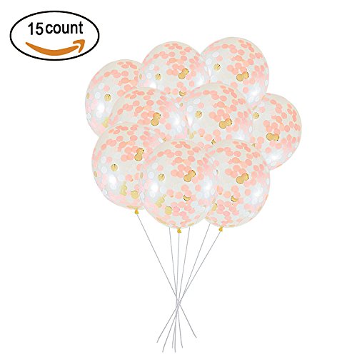 • SOTOGO 15 Pieces Rose Gold Confetti Balloons 12 Inches Large Rose Gold Balloons With Golden Light Pink and White Paper Confetti Dots For Party Decorations Wedding Decorations And Proposal
