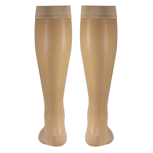 • Truform Sheer Compression Stockings, 15-20 mmHg, Women's Knee High Length, Open Toe, 20 Denier, Light Beige, Large