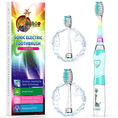 • Kids Electric Toothbrush, Soft Battery Tooth Brush with Timer Powered by Sonic Technology for Children Boys and Girls, Waterproof for Shower (Blue)