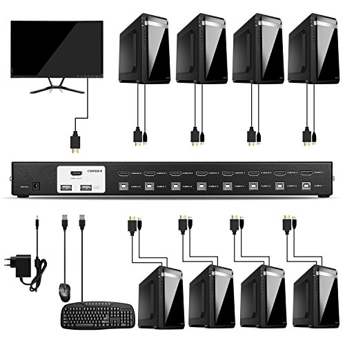 • TNP KVM Switch HDMI (8 Port) Support 1080p Resolution HDCP w/ 8 HDMI & USB Cables Push Button, Hot Key Control Selector Rack Mount Adapter Hub for Computer PC Laptop Notebook Monitor Keyboard Mouse