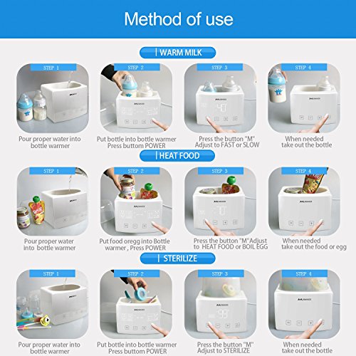 • Baby Bottle Warmer & Sterilizer, Breastmilk - Food - Milk - Formula - Heat Egg - Water Warmers, ROKKES LED Tru-Temp Fast Electric Dual Multi Bottles Heater & Steam Sterilizer for Kids, Bottle Holder