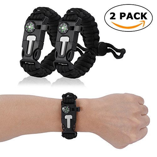 • Toplus Paracord Survival Bracelet, Outdoor Emergency First Aid Tool Kit Fire Starter, Compass, Whistle, Scraper, Fishing Tools and More