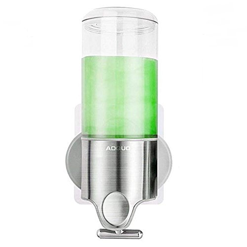 • KRY Shower Soap Dispenser Single Chamber Wall Mounted NO DRILLING, for Dishwashing Liquid/Shampoo/Conditioner, Food Grade PC Plastic Bottles, Stainless Steel Panel, Zinc Metal T-bar, 15 oz x 1