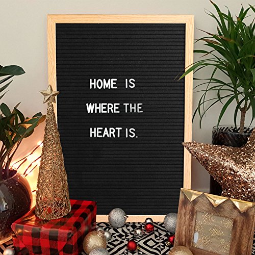 • Innocheer 12 x 16 Inch Black Felt Letter Boards with 340 Letters, Changeable Letter Message Board Oak Wood Frame with Mounting Hook, Stand and Letter Organizer