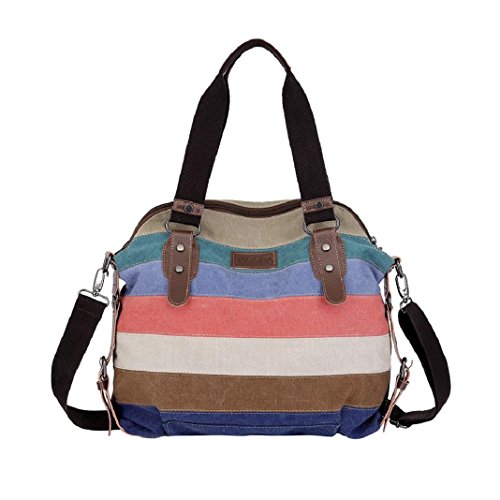 ShenPourter_Women Bag ShenPr Women Casual Canvas Messenger Bag Color Block Stripes Larage Capacity Multifunction Shoulder Bag Crossbody Bag Handbag, Multicolor