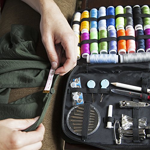 • VelloStar Sewing KIT for Adults - Over 100 Easy to Use Sewing Supplies & 24-Color Threads, a Needle and Thread Kit for Small Fixes, Mini Travel Sewing Kit for Emergency Repairs, (Black, Pack of 4)
