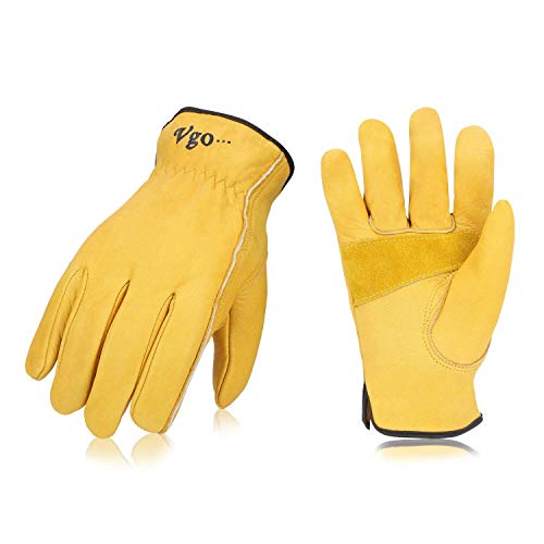 Vgo... Vgo 3-Pairs Unlined Cow Grain Leather Work and Driver Gloves with Cow Split Leather Palm Patch (Size M, Gold,CA9590), 3 Pairs Gold, Medium