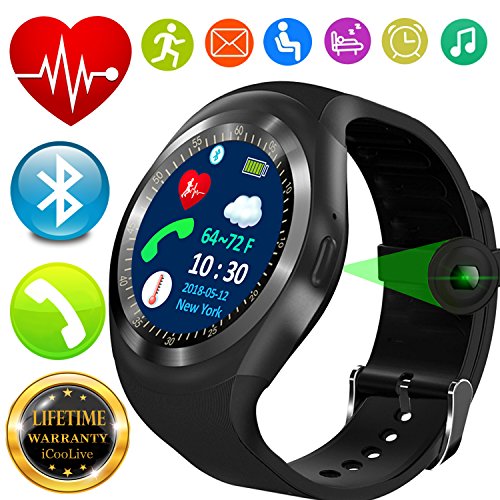 iCooLive Smart Watch with bluetooth for Men Women Sport Fitness Tracker with Heart Rate Monitor Blood Pressure Step Counter Pedometer Monitor Cycling Bracelet Touch Screen Kids Father Day for Android iOS, Black