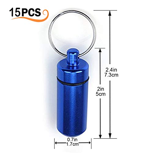 hatisan Mini Waterproof Aluminum Pill Container Cache Drug Box with Keychain - Colorful Outdoor Camping Travel Traveling Portable Pill Capsule/Match Case Bottle (15Pc Mini Size, Random Colors), 15 Count (Pack of 1)