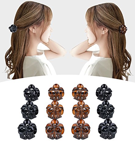 • Fascigirl Claw Clips, 12 Pcs Mini Hair Clips Plastic Clamps Classic Octopus Jaw Clips for Women Girls (Black and Brown)