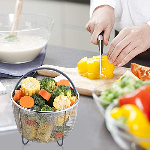 • 6qt Stainless Steel Steamer Basket Fits InstaPot Pressure Cooker Instant Pot Accessories w/Silicone Scrubber Handle and Non-Slip Legs for Steaming Vegetables Fruits Eggs Meats