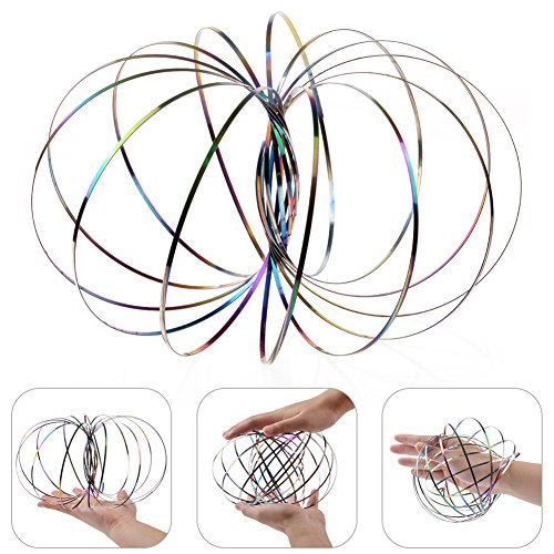 • FM Fidget Magic Ring, Kinetic Spiral Flow Spring Ring Toys with 3D Novelty Shape, Stress Relief and Decompression, Interactive Multi-Sensory New Toys for Adults and Kids(Rainbow)