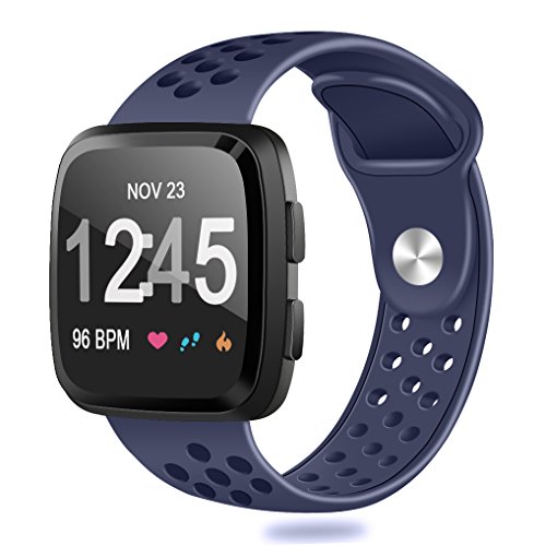 HUMENN For Fitbit Versa Bands, Replacement Accessory Breathable Sport Bands with Air Holes for Fitbit Versa Smartwatch, Navy