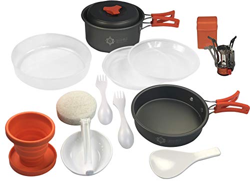 • Camping Cookware Kits - BPA-Free Non-Stick Anodized Aluminum Mess Kits - Complete Lightweight Mini Folding Pot Kits with Utensils for Camping Hiking Backpacking and Survival Cooking (14 Piece Set)