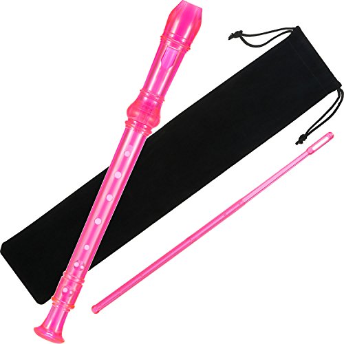 • Pangda Descant Soprano Recorder German Style 8 Hole with Cleaning Rod, Black Storage Bag (Transparent Pink)