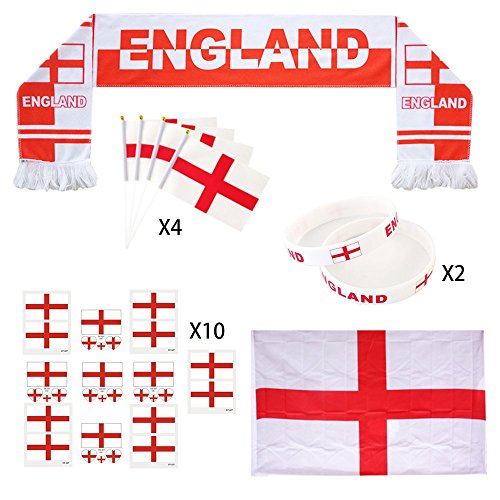 • KingShark World Cup 2018 Set, Football Suit Fans Scarf, England, Hand Held Flags, Big National Flag, Tattoo Stickers, Silicone Wristbands, Party Club Bar Decorations Festival Celebration