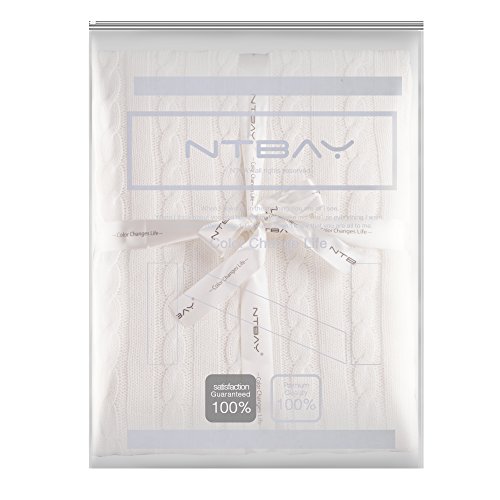 • NTBAY 100% Cotton Cable Knit Toddler Blanket Throw Blanket Super Soft Warm Multi Color, 30"x 40", White