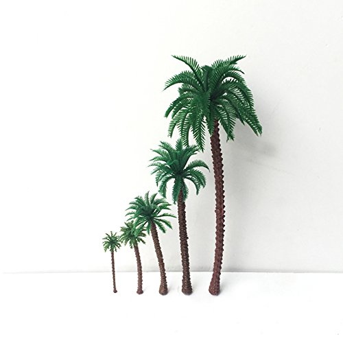 • Hatisan 20Pcs Coconut Palm Model Trees/Scenery Model Plastic Artificial Layout Rainforest Diorama, Building Model Trees Cake Topper, Model Train Railways Architecture Landscape (Dark trunk)