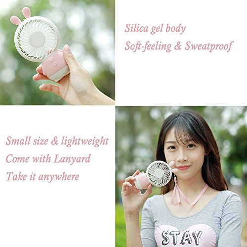 • Portable Mini Fan, USB Rechargeable Small Fan with Colorful LED Lights and 2 Adjustable Speeds, Handheld Personal Fan with Stand and Necklace, Perfect for Indoor or Outdoor Activities(Pink Bunny)