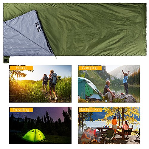 • ieGeek Sleeping Bag, Lightweight Envelope Sleeping Bags with Compression Sack Portable Waterproof for 3 Season Travel Camping Hiking Backpacking Outdoor Activities,Ultra-Large for Kids/Adults(Green)