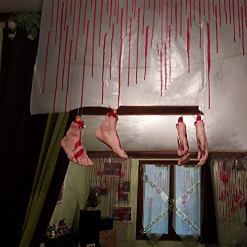 XONOR Halloween Severed Hands Feet Set Scary Bloody Broken Body Parts Halloween Props Decorations, 4 Pieces(Feet & Hands) (Skin Color)