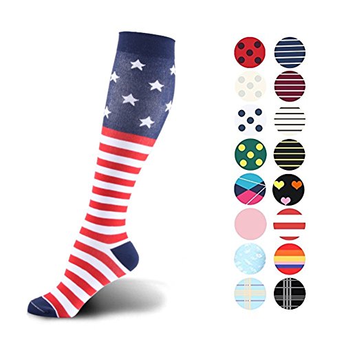 HLTPRO Compression Socks for Women & Men - Knee High Socks for Running, Flight, Travel, Nurses, Pregnancy, Edema, mens, America Flag