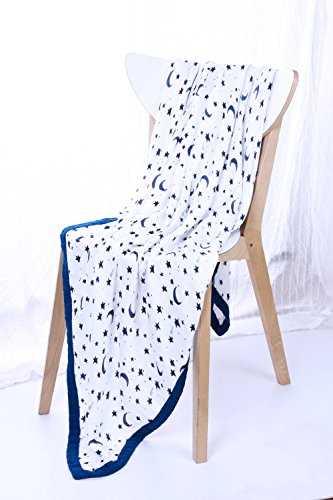 • Muslin Stroller Blanket - Starry Sky Print Bamboo Summer Blanket for Toddler - Oversized 47" x 47" - 2 Layers Dream Blanket for Baby Boy and Girls (Starry Sky)
