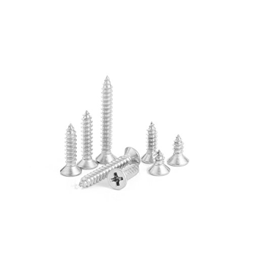 • NINDEJIN 242Pcs 304 Stainless Steel Flat Head Self Tapping Screw Assortment Kit Set with Cross-Head Batch,Size:M3.5, Length 1/2” to 1-1/2”