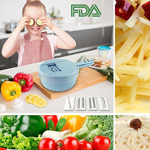 • Soogoo Vegetable Slicer, kitchen Mandoline Slicer veggie Cutter Grater Chopper Julienne Slicer with Hand Protector,Food Storage Container Tool for Potato, Tomato, Onion, Cheese, Cucumber