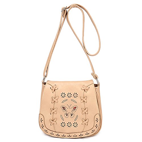 Toniker Women's Crossbody Saddle Bags PU Leather Small Shoulder Bag with Adjustable Strap and Magnetic Button, womens, Beige
