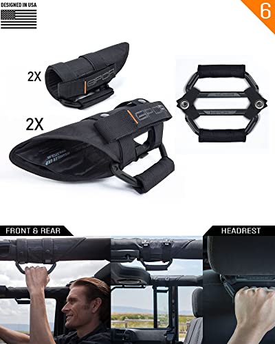 GPCA Metal Grab Handles for Jeep Wrangler 4xe, JL, JT, JK, Sport, Sahara, Rubicon and Gladiator 4DR/2DR 2007-2023 GP Grip PRO, Foldable Patented, 4+2 Packs, Jet Black, Front + Rear + Headrest Handles