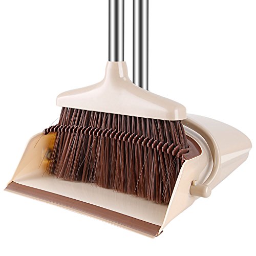 Gorich Windproof Broom and dustpan set upright with long handle Great for sweeping kitchen,office, house, outdoors, Beige