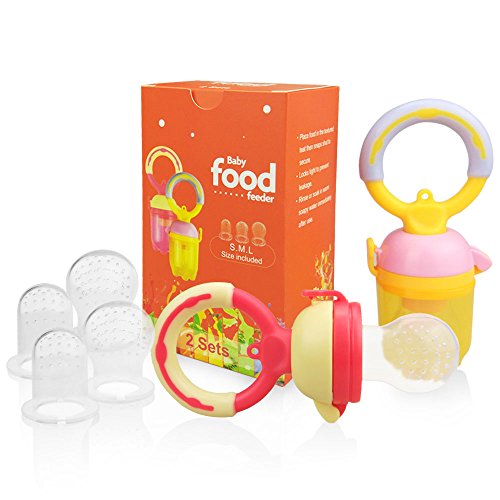 Baby Fresh Food Feeder Pacifier(2 Sets) - SILIVO Silicone Fruit Teething Feeder Teether Toy for Infants,Toddlers, and Kids - Includes All Sizes Silicone Nipples