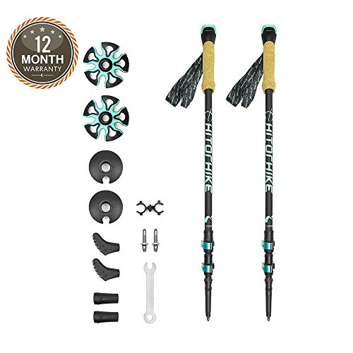 • Hitorhike 3K Carbon Fiber Trekking Poles – Ultra Strong, Collapsible Walking Sticks with Premium EVA Cork Grip, Aluminum Quick Locks, Skin Strap, Terrain Accessories and Carry Bag (2 Poles)