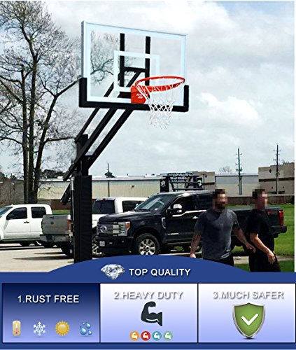• katop Silver:In-ground Basketball Hoop,Adjustable Basketball Goal Hoop with 54" Glass Backboard System for Adults Outdoor Basketball (BLACK :RUST FREE, 54 Inch)