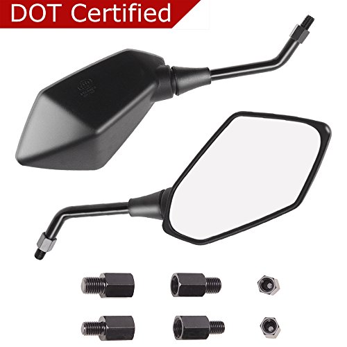 • Goodway Universal Motorcycle Mirrors with M8 M10 Clockwise and Counter Clockwise Threaded Bolts DOT Certified for ATV Scooter Cruiser Kawasaki Suzuki Honda