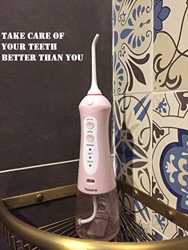 • Cordless Water Flosser Teeth Cleaner, Vosaro Portable Oral Irrigator Dental Pink Water Flossers With 3 Jet Tips, For Braces & Travel, 200ML&IPX7 Waterproof