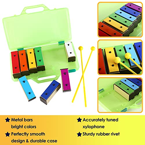 MINIARTIS Glockenspiel Xylophone | Educational Music Toys for Toddlers | 8 Notes Colorful Resonator Bells for Kids with 15 Songbook & Green Case | Great Birthday Gift for Children