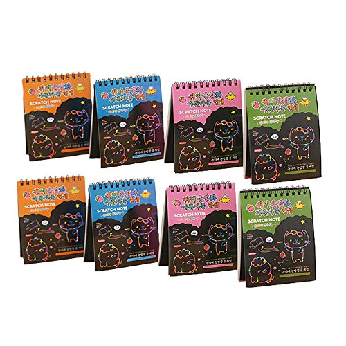 • 8 Packs Rainbow Scratch Paper, Magic Scratch Art Painting Scratch & Sketch Art Note Pads with Wooden Stylus for Kids Have Fun and Creativity (14cm×10cm/5.5"×3.9", 4 Colors)