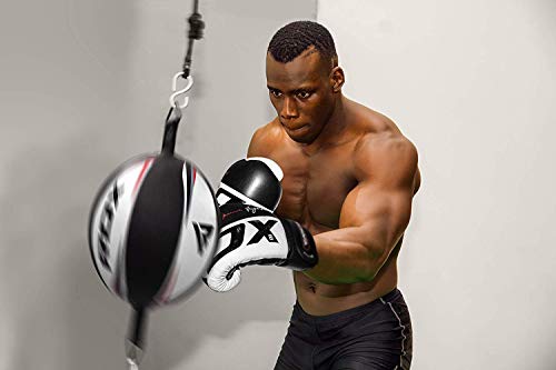RDX Boxing Gloves for Training & Muay Thai - Cowhide Leather Mitts for Sparring, Kickboxing & Fighting - Great for Heavy Punch Bag, Focus Pads, Grappling Dummy and Speed Ball Punching, Black/White